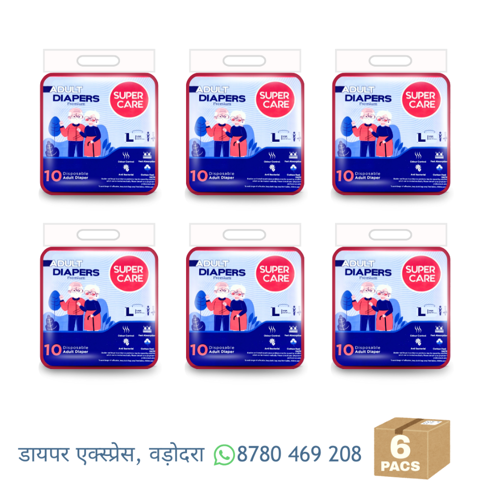 SUPER CARE Popular, Tape Style Diapers, Large (L) size, 60 Counts, 34 to 54 in, 8-10 Hours