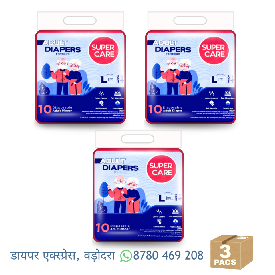 SUPER CARE Popular, Tape Style Diapers, Large (L) size, 30 Counts, 34 to 54 in, 8-10 Hours