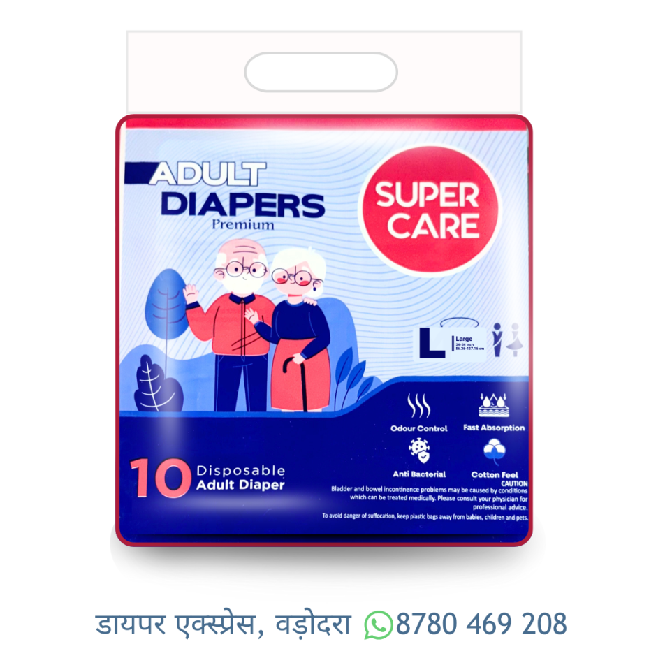 SUPER CARE Popular, Tape Style Diapers, Large (L) size, 10 Counts, 34 to 54 in, 8-10 Hours