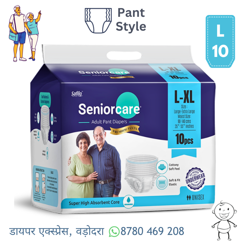 SENIOR CARE Popular, Pants Style Diapers, Large (L) size, 10 Counts, 35 to 55 in, 10-12 Hours