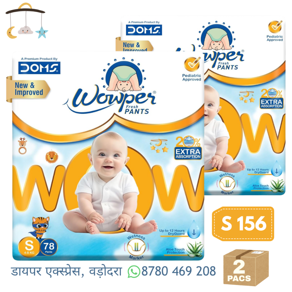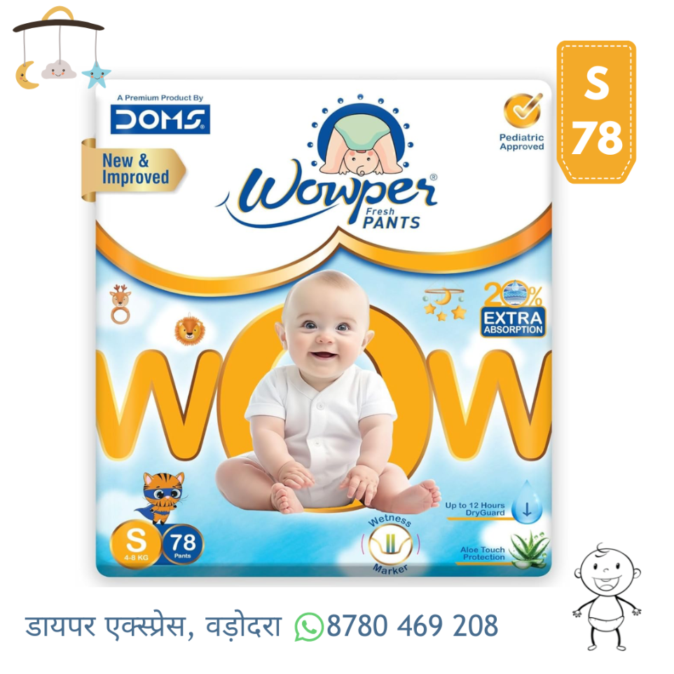 WOWPER Fresh Pants Style Baby Diaper, Small (S) size, 78 count, 4 to 8 Kg