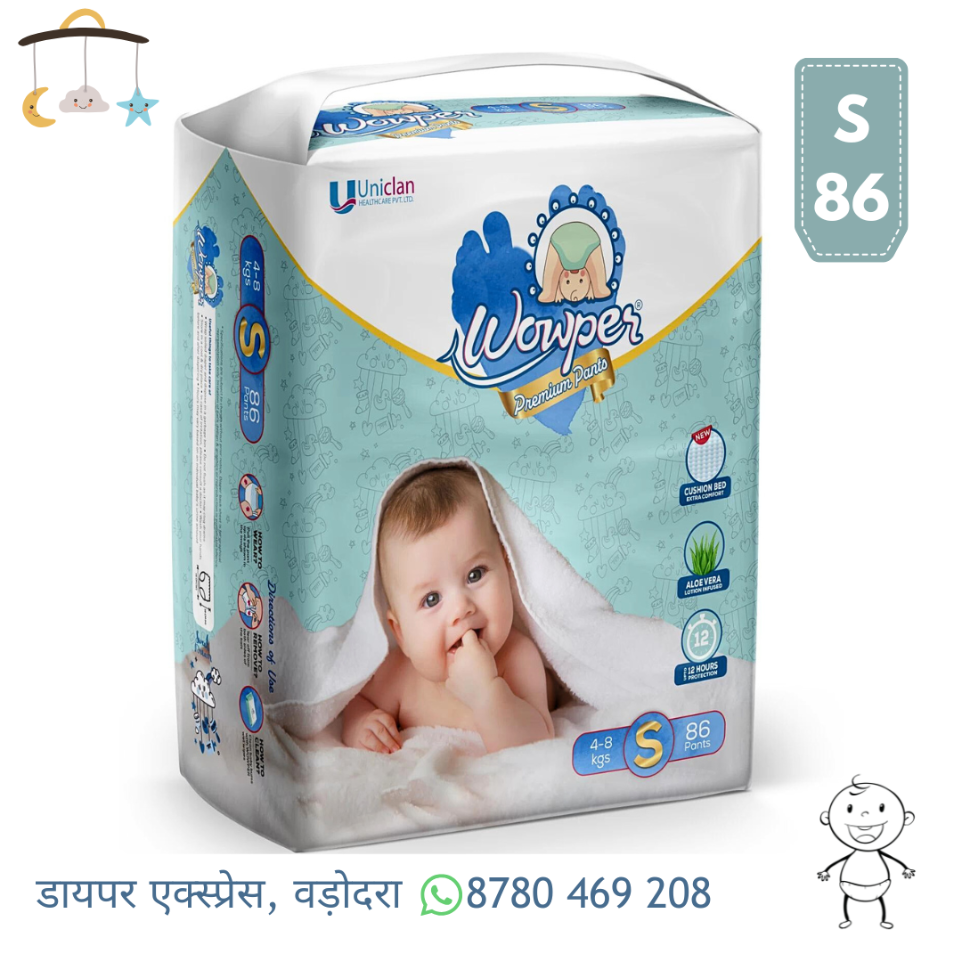 WOWPER Premium Pants Style Baby Diaper, Small (S) size, 86 count, 4 to 8 Kg