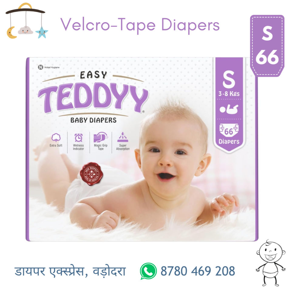 Teddy Velcro Cotton Elastic Baby Diaper - Small Size, 78 Pcs | 4-8 Kg | High Absorb Core Upto 12 Hrs Leakage Protection | Breathable, Soft and Dry | Anti-Rash and Anti-Bacterial Pants for Babies