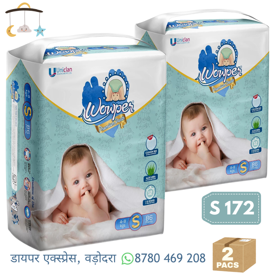 WOWPER Premium Pants Style Baby Diaper, Small (S) size, 172 count, 4 to 8 Kg