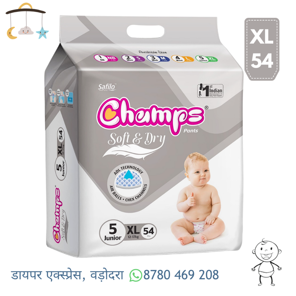 CHAMPS Soft & Dry, Pants Style Diapers, Extra Large (XL) size, 54 Counts, 12 to 17 Kg, 12 Hours
