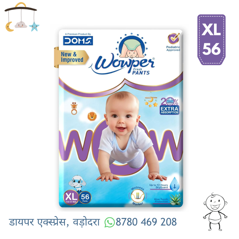 WOWPER Fresh, Pants Style Diapers, Extra Large (XL) size, 56 Counts, 12 to 17 Kg, 12 Hours