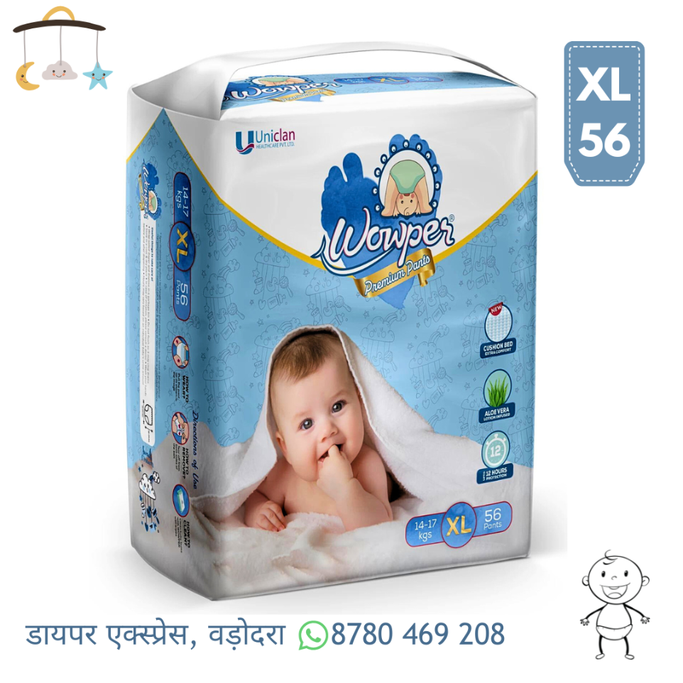 WOWPER Premium, Pants Style Diapers, Extra Large (XL) size, 56 Counts, 12 to 17 Kg, 12 Hours