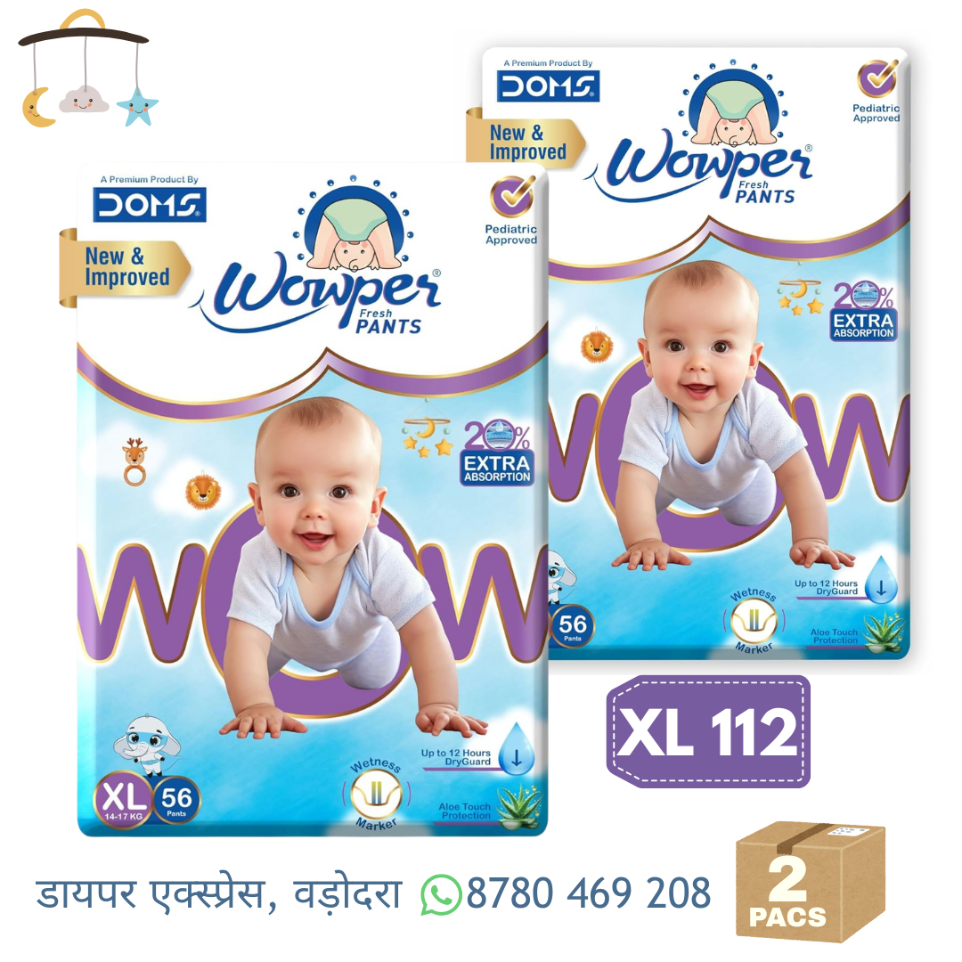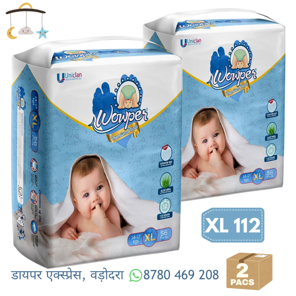 WOWPER Premium, Pants Style Diapers, Extra Large (XL) size, 112 Counts, 12 to 17 Kg, 12 Hours