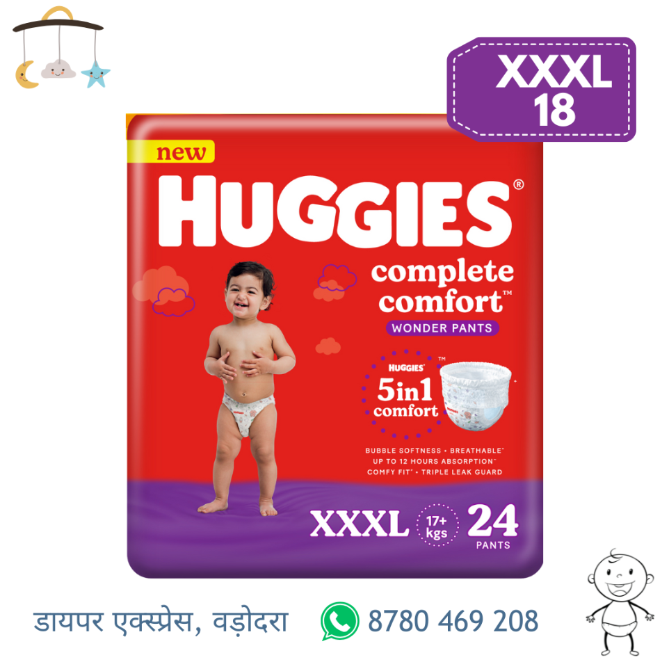 HUGGIES, Pants Style Diapers, Double Extra Large (XXXL) size, 24 Counts, 17 to 35 Kg, 12 Hours